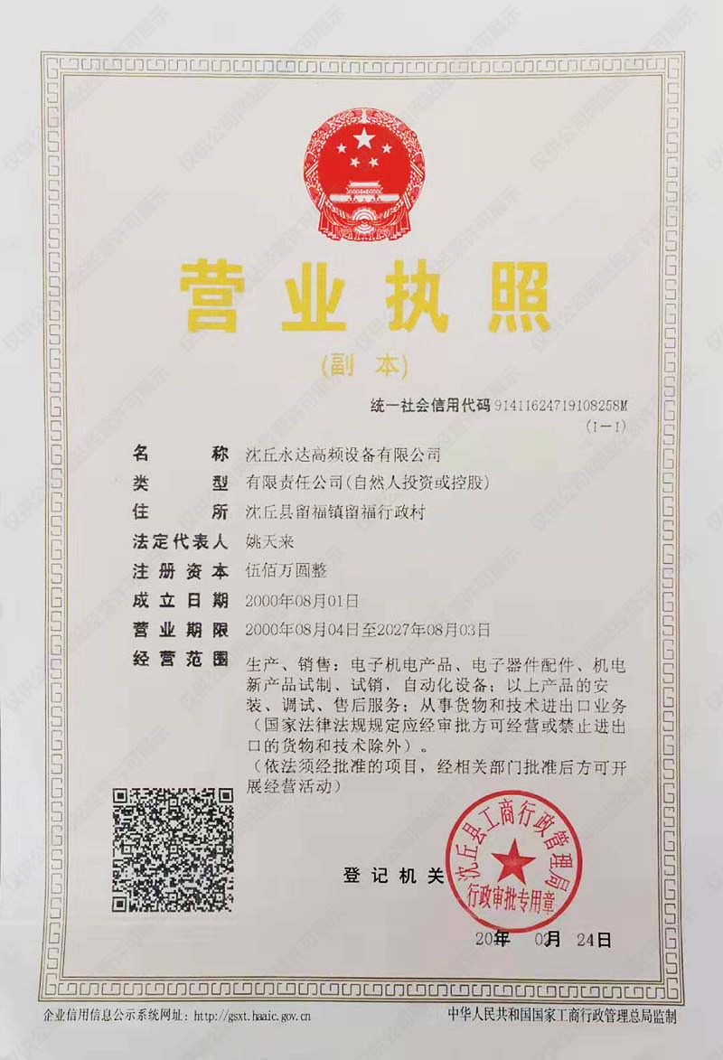 沈丘永達高頻設備有限公司創建于199¶ δ€6年(nián),産品有(yǒu)高(gāo)頻(pín)感應加熱(rè)設備、中頻(pín‌β)感應透熱(rè)設備、高(gāo)頻(pín)焊機(✔∏✔↑jī)、中頻(pín)熔煉爐、中頻(pín)爐、閉÷™式冷(lěng)卻塔、超高(gāo)頻(pín)感應加熱♥δ(rè)設備、中頻(pín)熔煉設備、高(gāo‌γα)頻(pín)淬火(huǒ)設備、高(gāo)頻☆​ (pín)釺焊設備、電(diàn)磁感應加熱(rè)設備、高(g≠'±āo)頻(pín)熔覆設備、淬火(huǒ)爐、調質生(shēng)産線₽§¶、液壓油缸熱(rè)拆及相(xiàng)關自(zì)動化(huà)設備等。屬于河(hβ↔↔∞é)南(nán)省高(gāo)新技(jì ♣δ)術(shù)企業(yè),自(zì)創立以來(lái)專業(yè)緻力于感應₩>€<加熱(rè)設備的(de)研發、制(zhì)造,§™€秉承不(bù)斷創新的(de)精神,同時(shí)加強與國(guó)內(nèi)的¶‌§(de)院校(xiào)、科(kē)研機(jī♣→✔✔)構的(de)合作(zuò),在感應加熱(rè)設備領域內(nèi)位于國(guó)內( αnèi)先進的(de)行(xíng)列,并與2004年(nián)8月(yuè¶§)通(tōng)過了(le)ISO9001:2000國(guó)際質量管理(lǐ)體(tǐ)系認$÷λφ證。